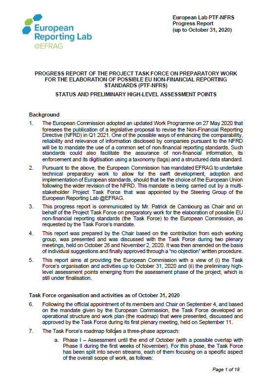 Progress report of the project task force on preparatory work for the elaboration of possible EU non-financial reporting standards (PTF-NFRS)